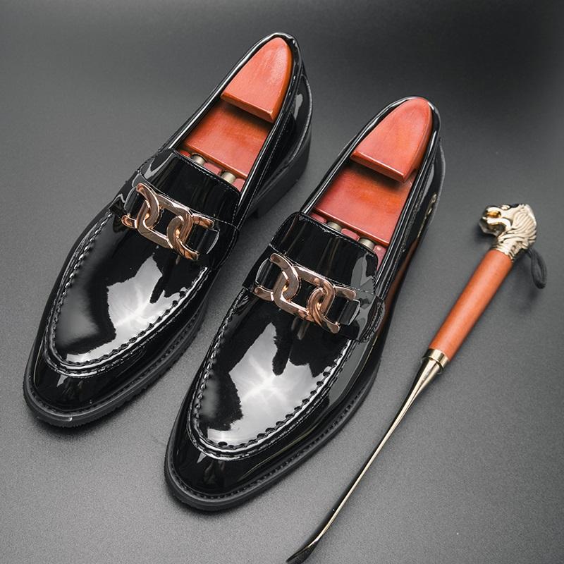 Trend Penny Loafers New Men's Pointed Metal Chain Leather Shoes For Male Designer Formal Wedding Prom Dress Homecoming Footwear