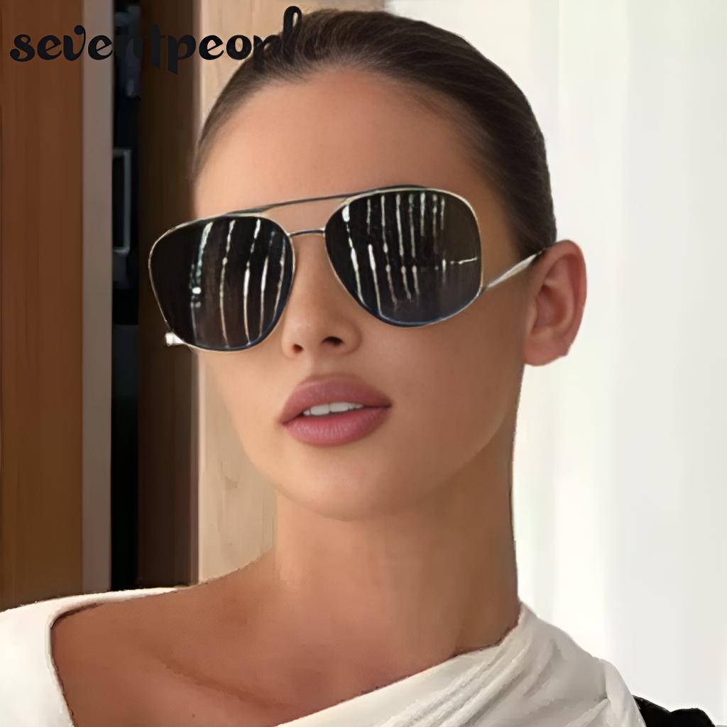 Oversized Double Beam Oval Sunglasses Women Men Luxury Brand Trendy Metal Frame Shades Eyewear For Ladies Classic Eyewear