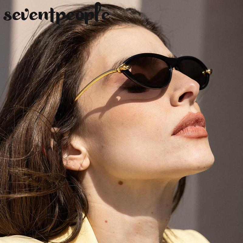 Small Frame Sexy Cat Eye Sunglasses Women Luxury Brand Vintage Y2K Punk Metal Sun Glasses Trendy Cateye Shades For Ladies