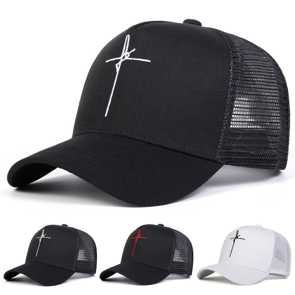 Men Personality Cross Embroidered Baseball Cap Mesh Hat Outdoor Adjustable Sunscreen Leisure Hat Spring Autumn Travel Tourism Beach Vacation