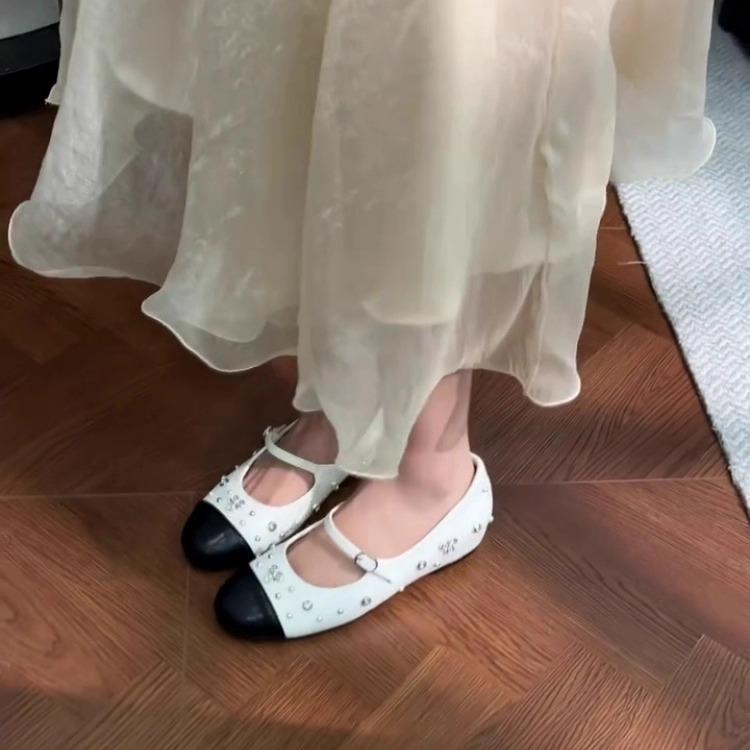 Sheepskin Version~ French Retro Woven Flat-soled Single Shoes Women's 2025 New Beautiful One-word Buckle Shallow Mouth Mary Jane Shoes