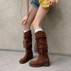 5CM European Goods Popular Fringed Temperament Western Boots 2025 Autumn and Winter New Round Head Thick Heel One Pedal High Boots