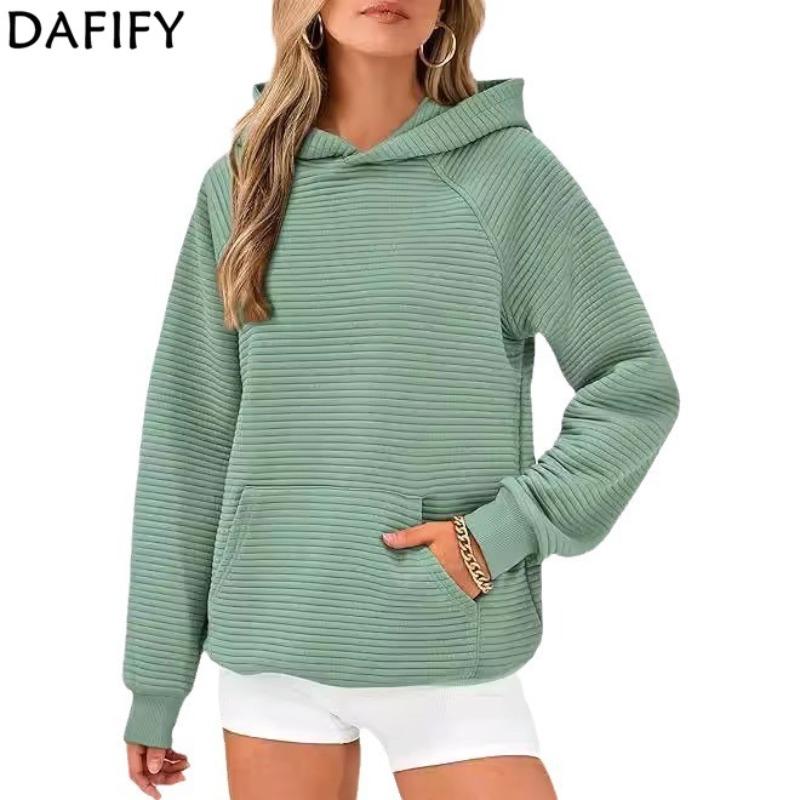 DAFIFY Women's Fashion Casual Solid Color Print Long Sleeve Hooded Hoodies & Sweatshirts