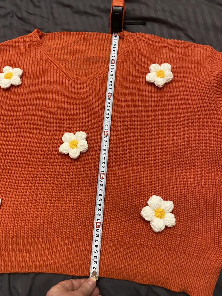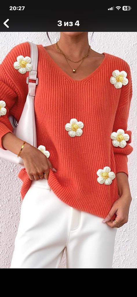 Autumn and Winter Women's Pullover Sweater with Hand-crocheted Three-dimensional Patchwork, Personalized Deep V Pullover