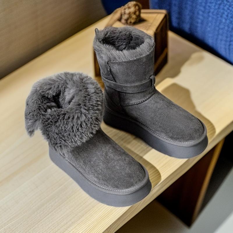 2025 Winter New Short Tube Two Wear Snow Boots Women's Platform Short Boots Piled and Thickened Large Northeast Gray Fluffy Cotton Shoes