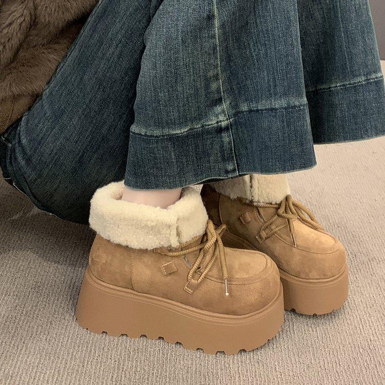 Retro Short Tube Thick-soled Snow Boots Women's Winter New 2025 Fleece Thickened and Heightened New Thermal Cotton Shoes