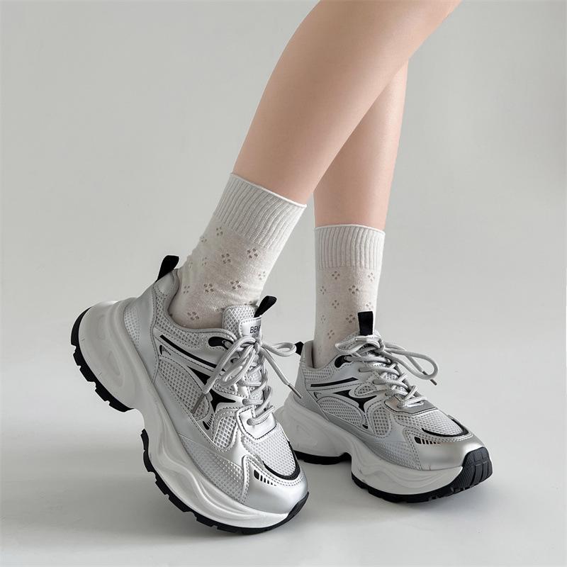 Queen Fan American Retro Silver Platform Dad Shoes Women's 2025 New Summer Thin Height-increasing Casual Sports Shoes