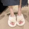 Fairy Wind Plush Cross Cotton Slippers Female Large Size Outer Wear 2025 New Spring and Autumn Home Use Non-slip Word Hair