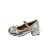Silver French Ballet Thick Heel Mary Jane Single Shoes Women's 2025 New Summer Light Mouth One-word Buckle High Heels
