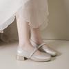French Thick Heel Rhinestone Mary Jane Shoes Women's 2025 Summer and Autumn New Square Head Shallow Mouth Single Shoes Small Leather Shoes Evening