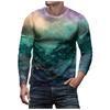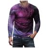 3D Brilliant Starry Sky Printed Top Casual Long Sleeved Men's T-shirts - Soft Medium Stretch Polyester Fabric Spring and Autumn Relaxed Fit Clothing