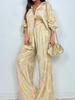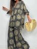 • This 5-piece set includes wide-leg pants and a matching top in five vibrant colors: pink, yellow, blue, gray, and brown.
