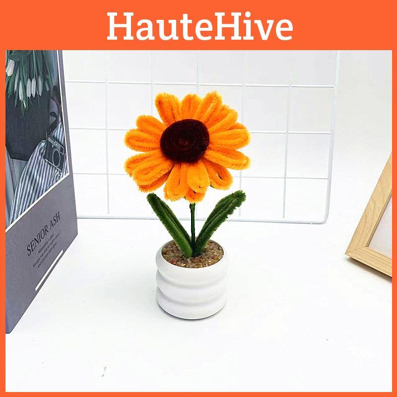 This knitted sunflower small potted plant serves as a decorative accent for home or outdoor spaces. Crafted with soft yarn,featuring vibrant yellow tones like golden and honey hues. Its detailed craftsmanship ensures a charming display on tables or shelves. Easy to maintain, wipe clean with a damp cloth, making it ideal for enhancing living rooms, desks, or patio decor.