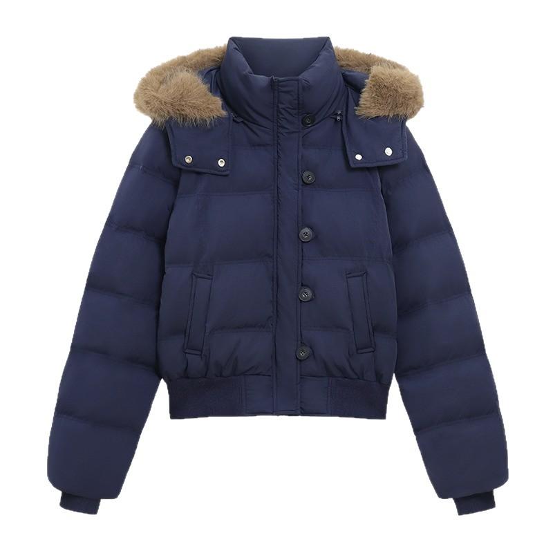 Winter Large Fur Collar Hooded Short Down Jacket for Women Slimming and Warm for Little Ones