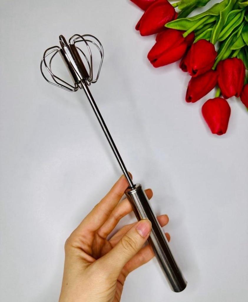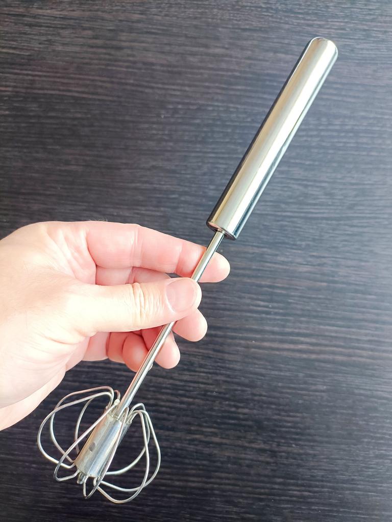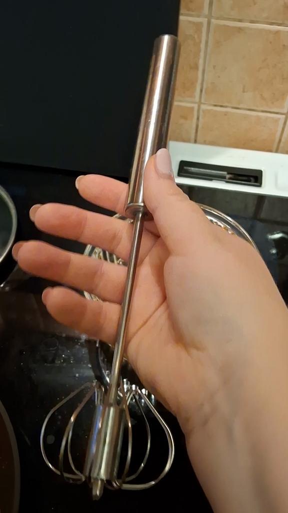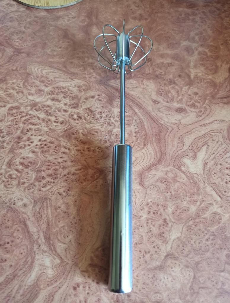 Semi-automatic stainless steel whisk* This whisk is a smart and simple solution for anyone who loves to bake or cook without getting complicated. With a semi-automatic design – a light press on the handle causes it to rotate on its own, and this saves effort in the hand and shortens whipping time. Made entirely of stainless steel – which means it is both durable over time and easy to clean (there is no risk of rust or odor absorption). Suitable for whipping eggs, whipped cream, pancake batter, and even sauces. Compact, quiet, convenient – a small but super useful tool in any kitchen. If you like practical tools that do a good job – this is exactly it.
