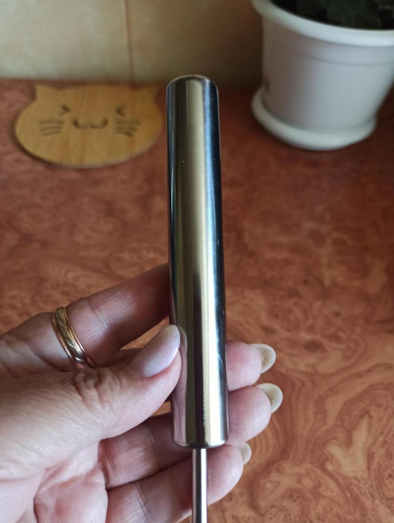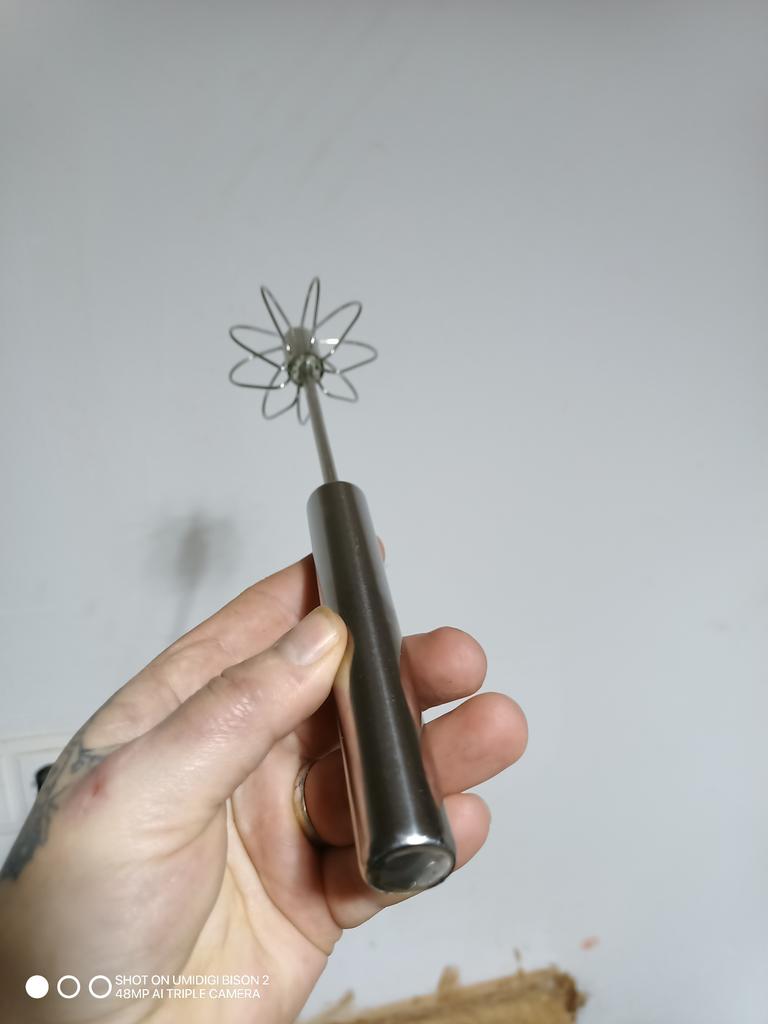 This mixer surprised me for the better! It's made of high-quality stainless steel, so it feels durable and easy to clean. The semi-automatic mechanism saves effort – with a simple press downwards it starts to spin quickly, and it's perfect for quickly whipping eggs, milk, coffee, or even batter for small pancakes.. Its size is compact, so it doesn't take up space in a drawer or on the countertop, and it's ideal for everyday use.. Recommended for anyone who likes to make frothed coffee at home or simple recipes without taking out the large mixer. A useful and worthwhile product!