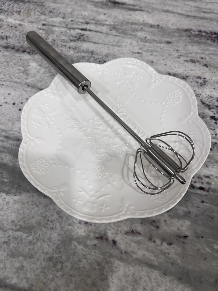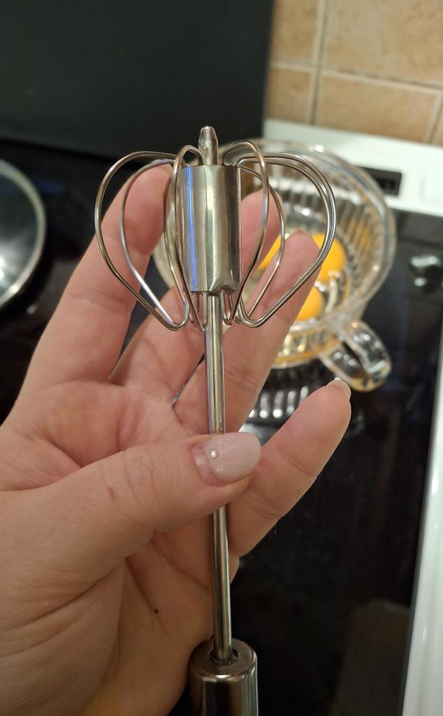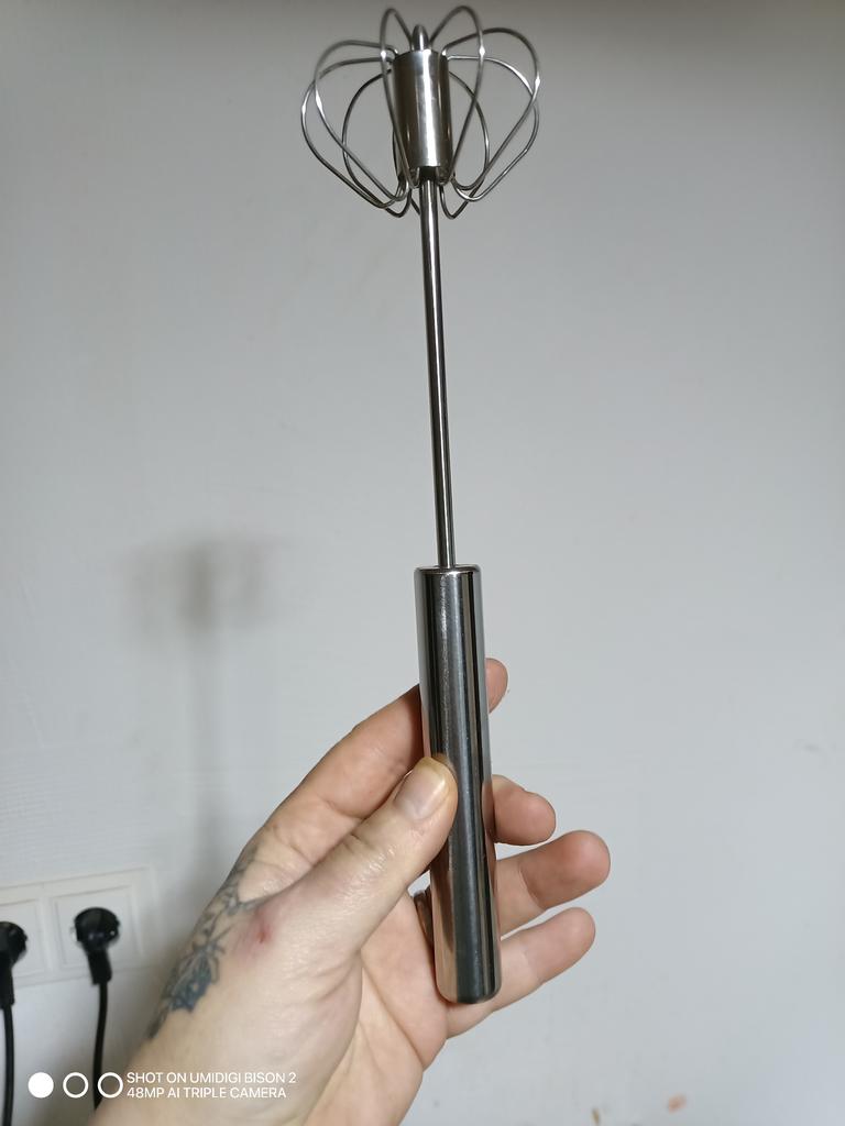 A semi-automatic whisk with which you can beat eggs and whip egg whites with just a little pressure, it is an interesting product 👍 👍 👍🤩 👌 👌 👌. 📦 Package Content: A semi-automatic whisk 👍Pros: Delivery to Spain in 25 days. ✈️ Well packed for the trip. The quality of stainless steel Very easy to use. It is fully portable. With it you can crack eggs and beat the whites with just a little pressure. 👎Cons: nothing to note. .
