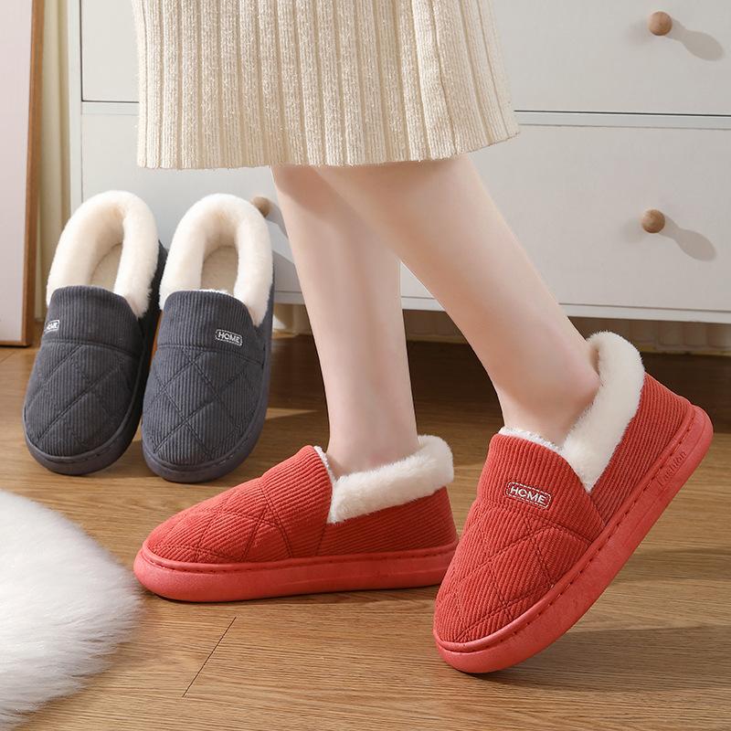 New Corduroy Cotton Slippers for Women Home Warm Shoes Soft Plush Anti-slip Couples Indoor Warm Non-slip Slides Footwear