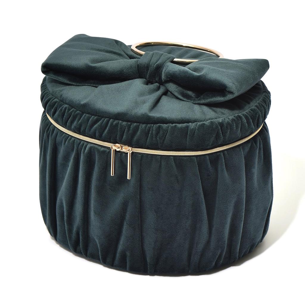 Francfranc Velvet Ribbon Vanity Cosmetic Makeup Makeup Storage Pouch, Large, Green, Pouch, Box,