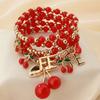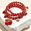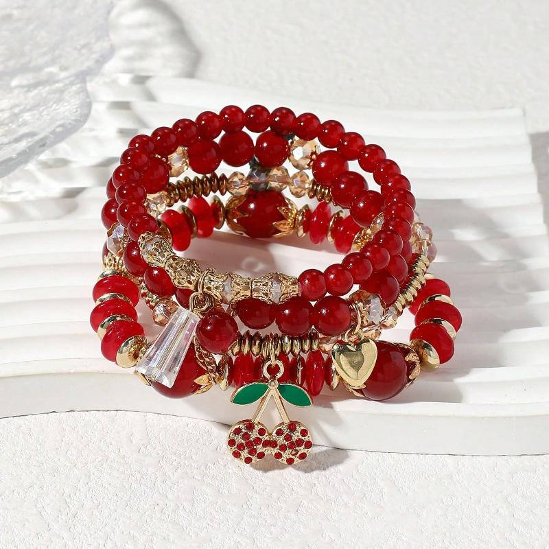 4 Pcs Versatile Red ABS Bead & Cherry Drop Oil Pendant Bracelet Set, Suitable For Women's Everyday And Vacation Outfits