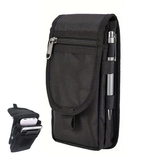 [Dimensions and Weight]: The size is 11 cm x 3 cm x 20 cm, and the weight is 100 g, lightweight and easy to carry.[Set contents]: Contains a mobile phone bag, card button ring, and strap, and has a complete set of functions.【High Quality Material】: Adopts durable oxford nylon material, durable and wear-resistant, long service life.[Practical soap]: Equipped with 3 pockets, large capacity, can store mobile phones under 6 inches, and the side bag can store pens and other small items.[Wide range of uses]: Suitable for storing small items such as mobile phones, cards, pens, screwdrivers, driver's licenses, etc., and suitable for many outdoor scenes such as traveling, walking, cycling, camping, construction work, etc.