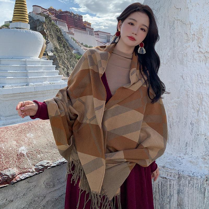 Autumn and Winter New Simple Starry Space Tassel Shawl Scarf Dual Purpose Retro Tassel Plaid Imitation Cashmere Scarf for Women