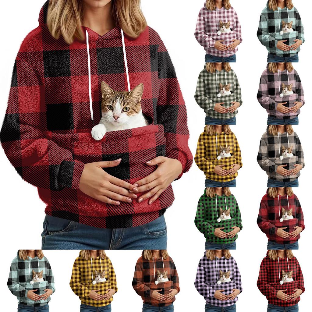 Women's Fashionable Casual Fleece Lined Long Sleeve Pocket Hooded Printed Sweatshirt