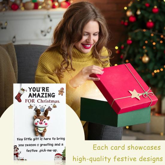 10 Sets Christmas Pocket Hug Gifts Mini Resin Positive Pocket Hug Token with Encouragement Card Emotional Gifts