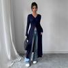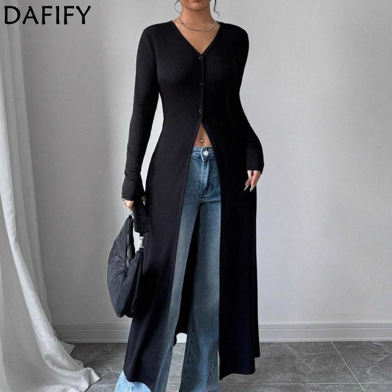 DAFIFY Women's Fashion Casual Spring Autumn Solid Color Print Long Sleeve V-Neck Blouses & Shirts