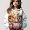 Kids Clothes Girl Hoodies Long Sleeve Cartoon 3D Cat Print Children Spring Fall Clothes Casual Cute Outdoor Girl Clothes Tops