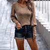 Women's And Winter Fashion Solid Color U-neck Slim Knitted Long Sleeve Top