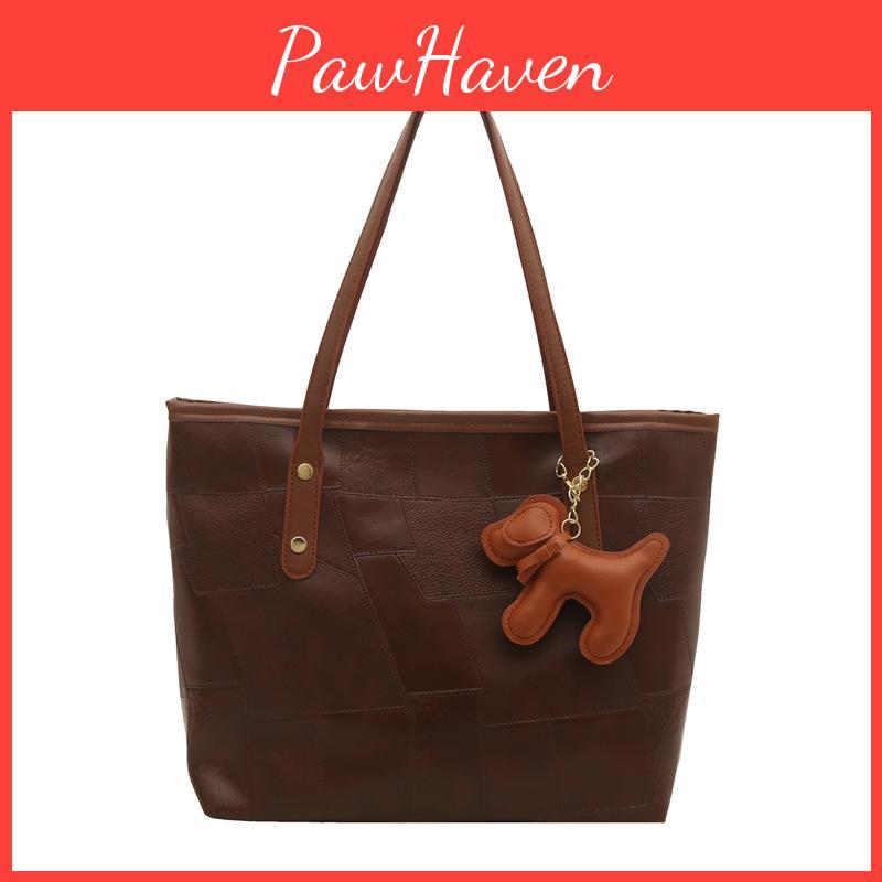 Fashion Solid Color Large Capacity Women Casual Tote Bag With Pendant For Daily