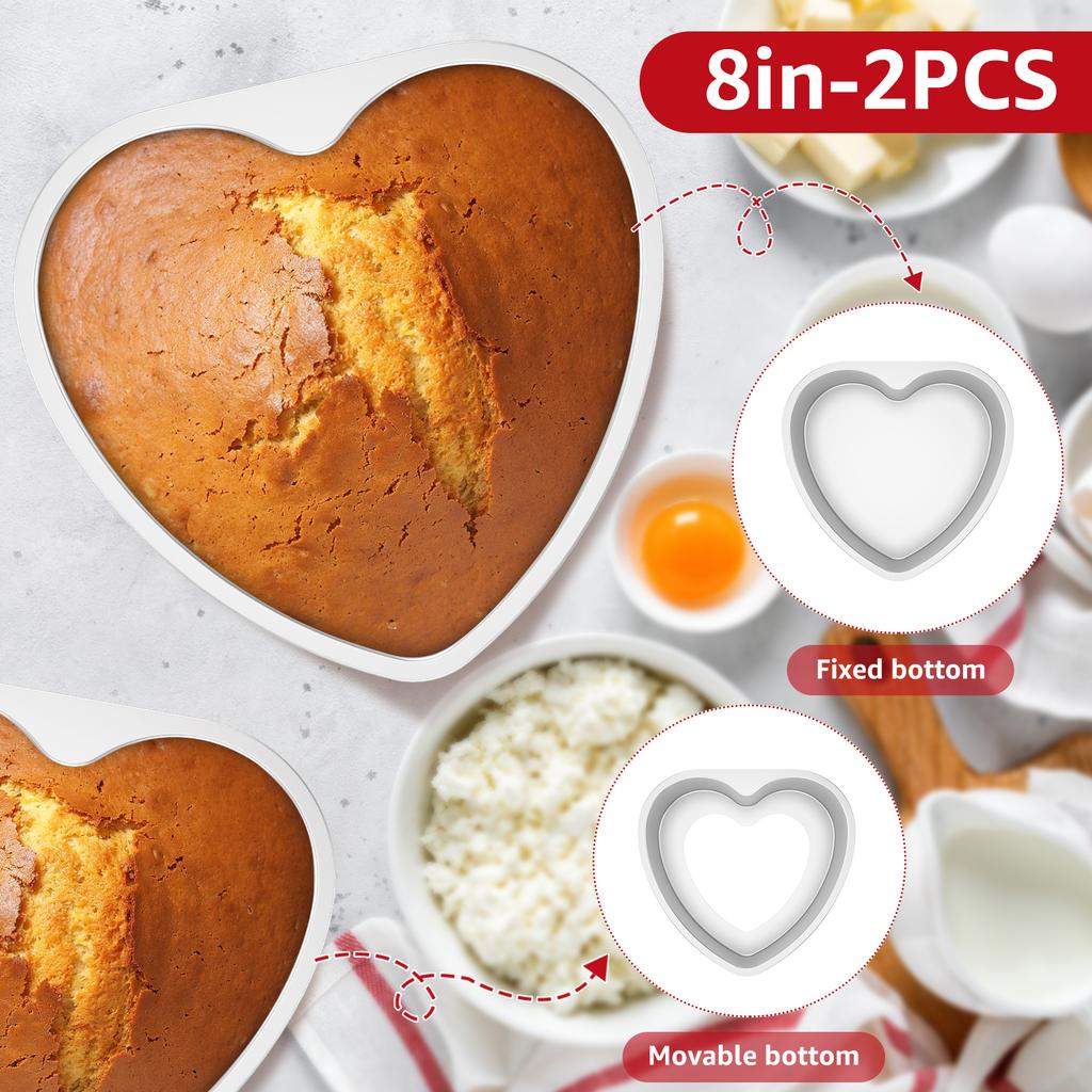 2Pcs 8 Inch Aluminum Heart Cake Bakeware Removable or Fixed Bottom Cake Die for Aluminum Alloy Baking Cake Mold Pan Nonstick