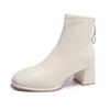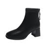 Low-barrel Elastic Thin Leather Women's Boots Square Head Rear Zipper British Fashion Short Boots for Women