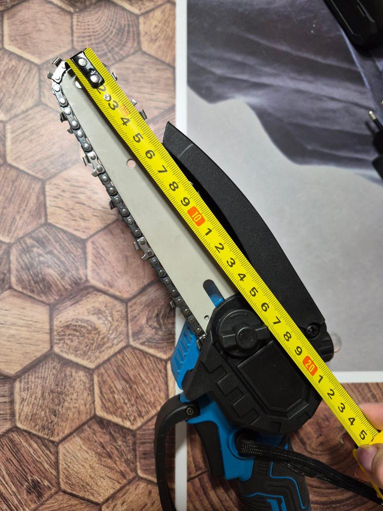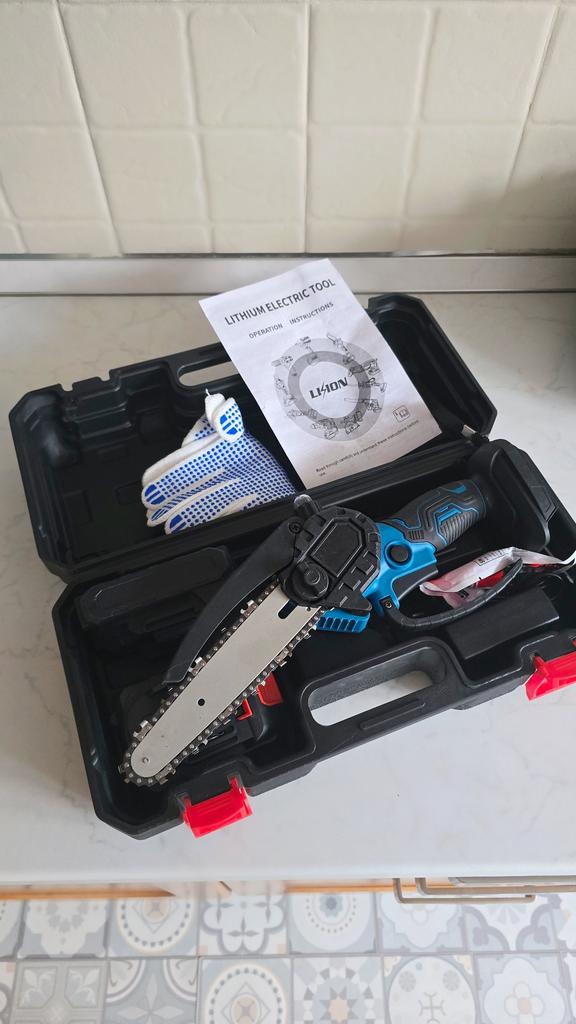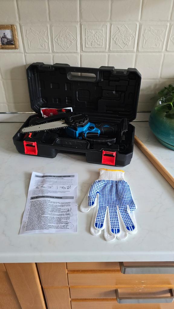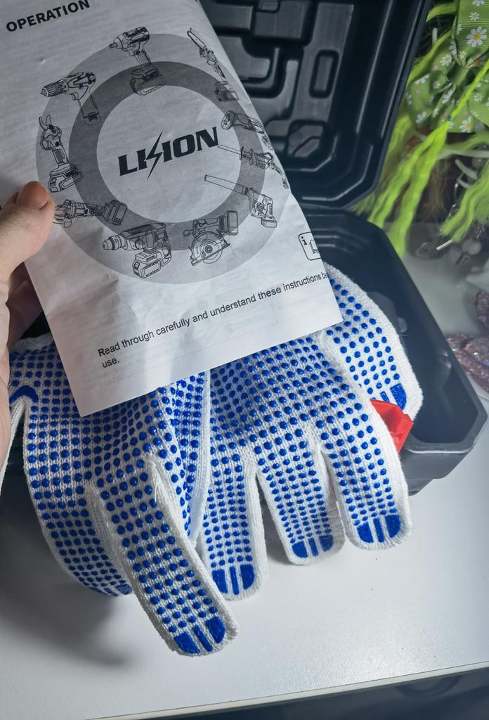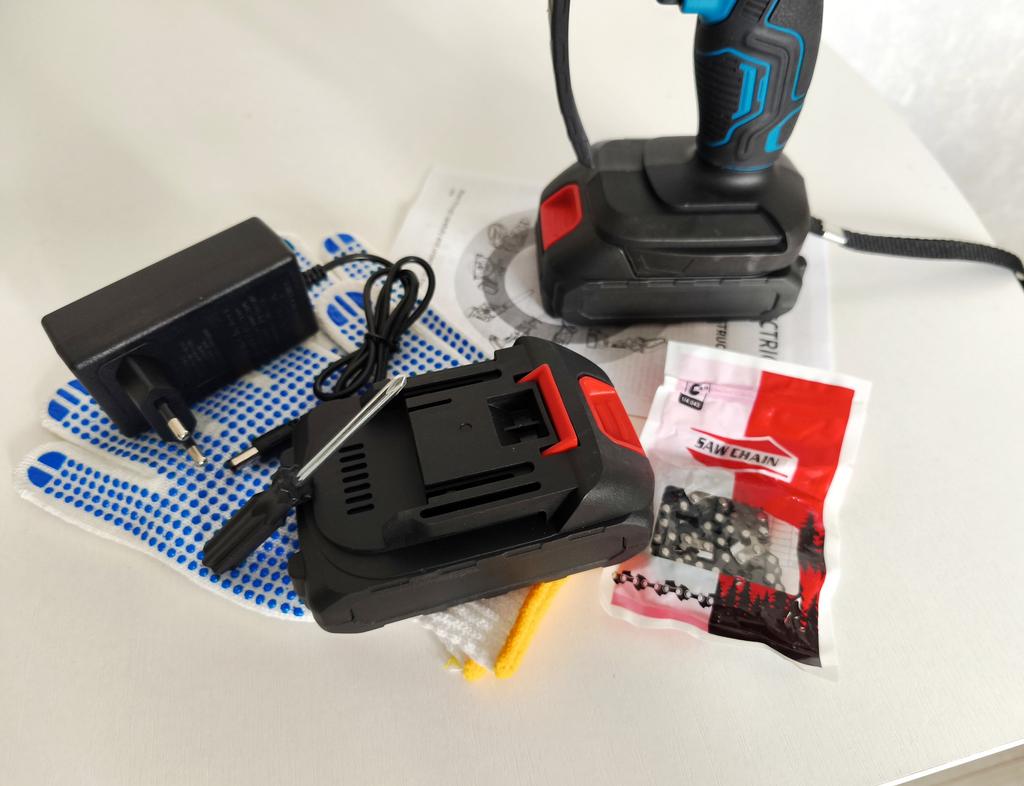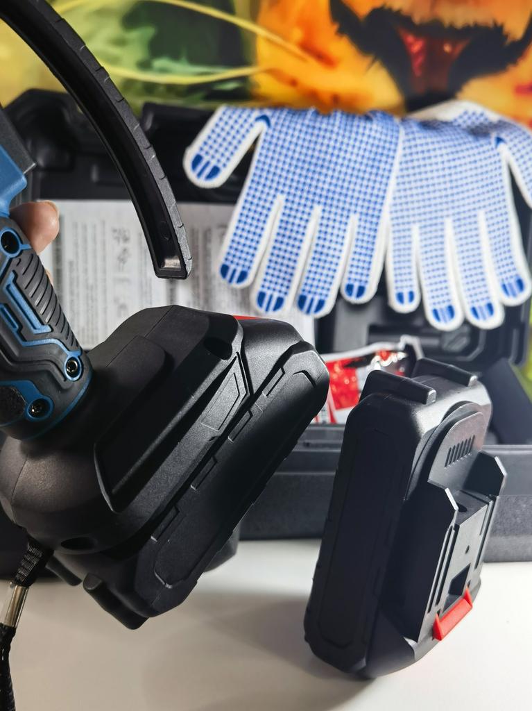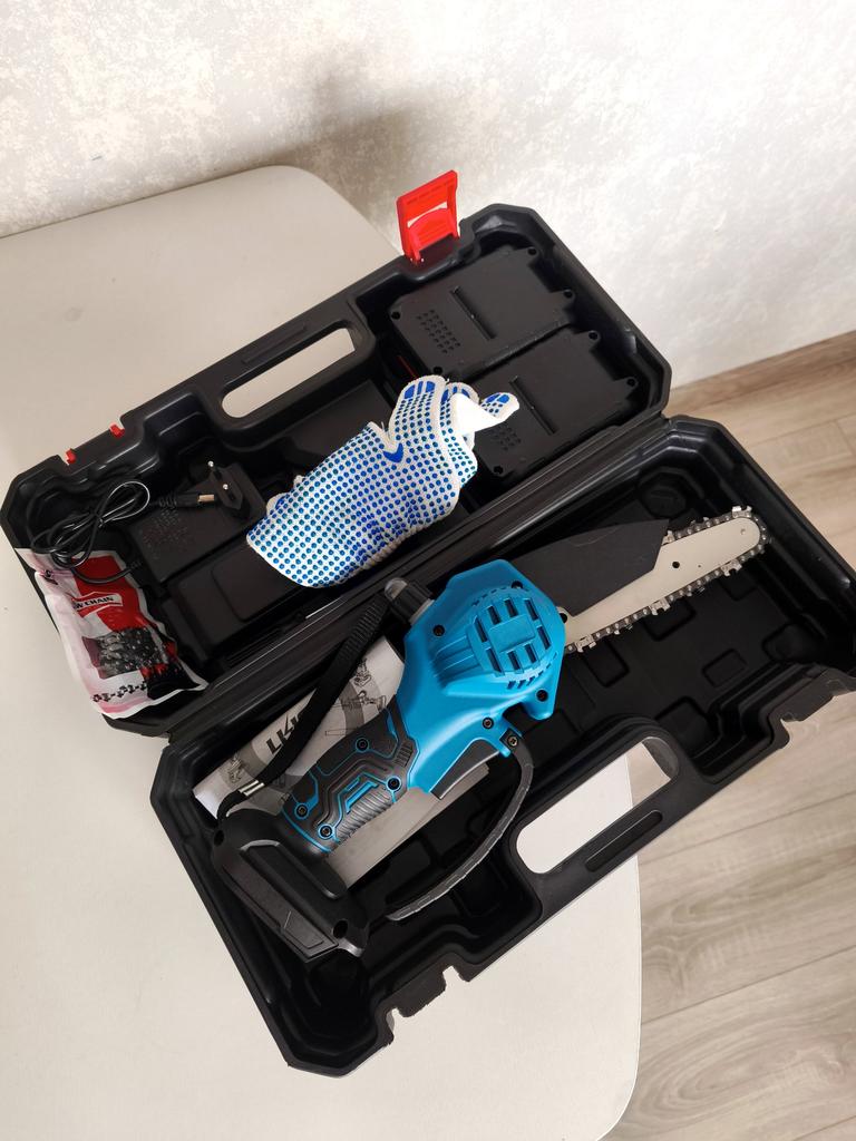 This chainsaw features a safety lock button to prevent accidents. Requires pressing two different buttons simultaneously to activate, ensuring that the chainsaw does not start unintentionally, providing enhanced safety. Flaps to prevent splashing wood chips. A non-slip handle for a more stable grip and non-slip gloves to keep your hands safe.