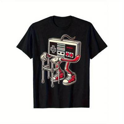Retro Video Game Controller Print Graphic Tee Men Cotton Casual Short Sleeve Gaming T-Shirt Daily Wear