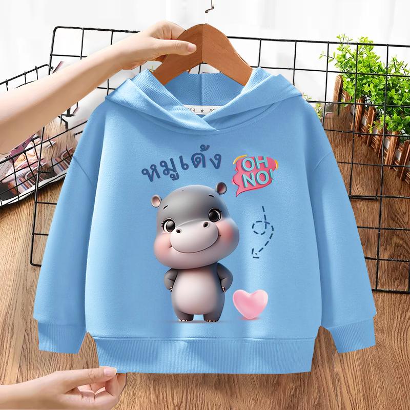 Children's Hippo Pattern Hoodie Comfortable, Soft, Breathable Fabric Long Sleeve Hoodie Sportswear Casual Daily Girls' Clothing