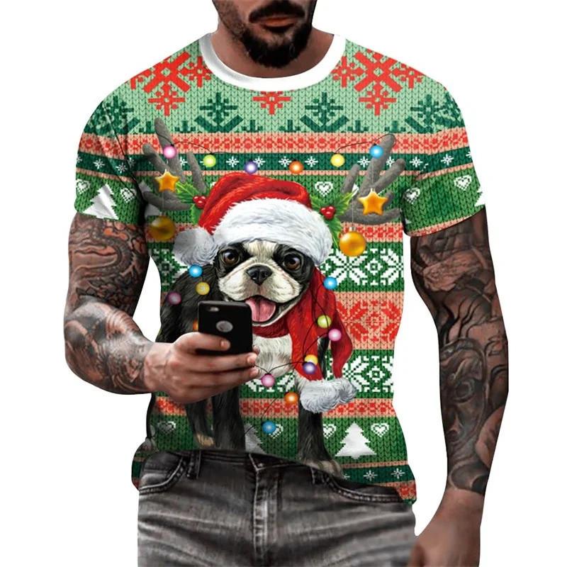 3D Printing Fun Tree Christmas Novel Pattern 3D Printing T-shirt Short Sleeve Men's Party T-shirt