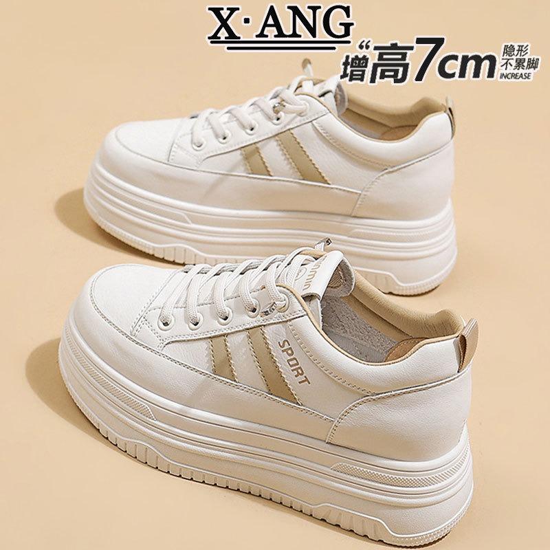 Small Inner Height Increase Women's Shoes Leather Platform White Shoes Spring New Versatile Casual Sports Board Shoes