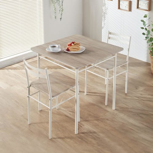 IRIS PLAZA (IRIS PLAZA) Dining Table Set for 2, 3-Piece Set, 70cm Wide, Includes 1 Table and 2 Chairs, Natural Wood Grain Finish, Stylish, Compact, As