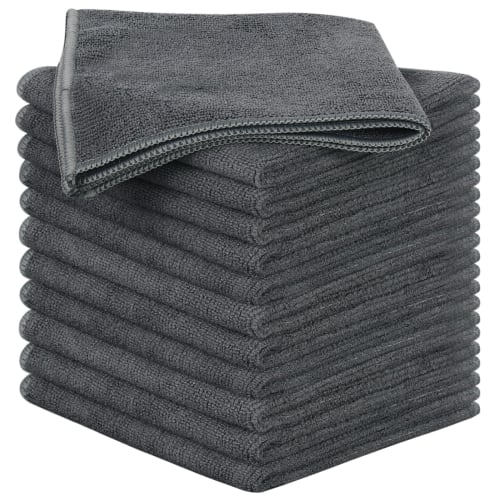 SINLAND Microfiber Cleaning Cloths, Commercial Towels for Kitchen, Cleaning, and Car Washing, Absorbent and Quick-Drying, 12-Count, Gray