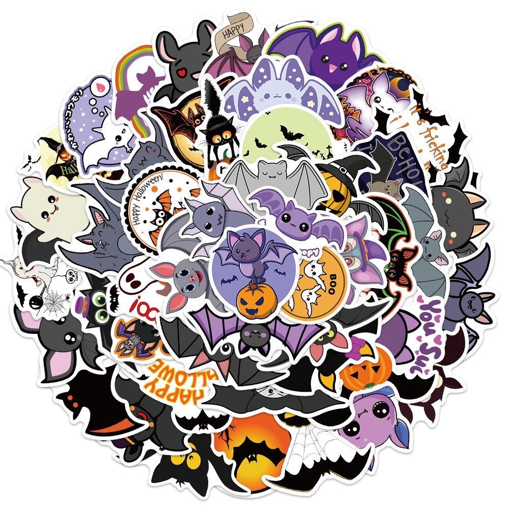 50PCS Halloween Purple Bat Stickers Streetwear Laptop Happy Halloween Elements Harajuku Wall Bar Fashion Living Room Sticker