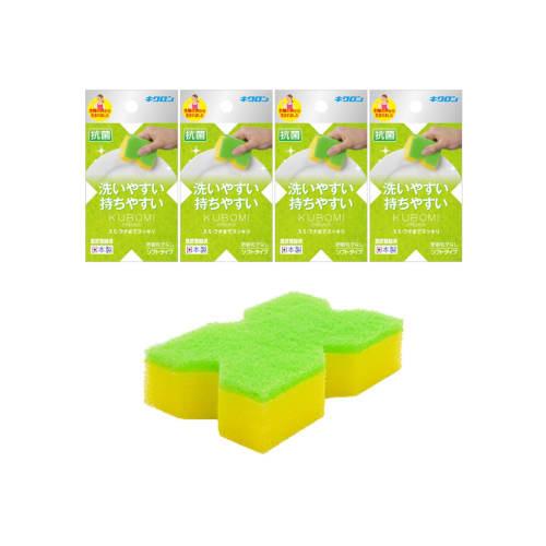 Kikuron Kitchen Sponge, Antibacterial, Soft, Green, Pack of 4, No Abrasive Grains, Made In Japan, KUBOMI