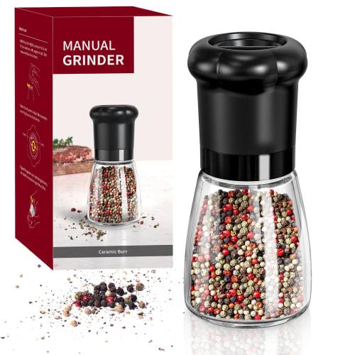 CIRCLE JOY Manual Pepper Mill, Spice Mill for Professional Chefs, Refillable Pepper Shaker, Ceramic Blade, Adjustable Coarseness, BPA-Free 180ml Glass