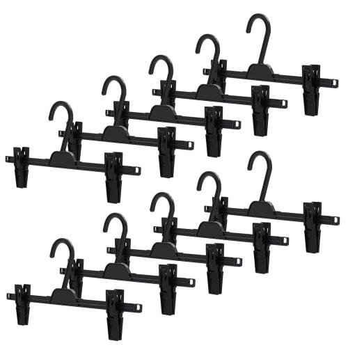 Shinko Hanger Reverse Clip Hangers, Set of 2 (5 Hangers), Black, Made In Japan, Heavy-Duty, Anti-Slip Clothes Drying Rack for Pants, Towels, Slacks, B