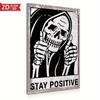 Vintage Skull Sign - "Stay Positive" 8x12 Inch Humorous Metal Decor for Alternative Spaces