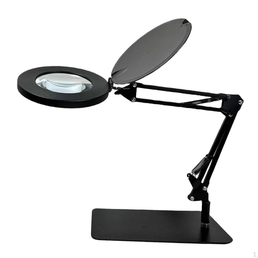 - 【Product】: This Magnifying Glass with Light and Stand. The LED Magnifying Lamp head can rotate 360° for flexible positioning. Heavy duty iron base for maximum stability on any flat surface, foldable swing arm for easy storage