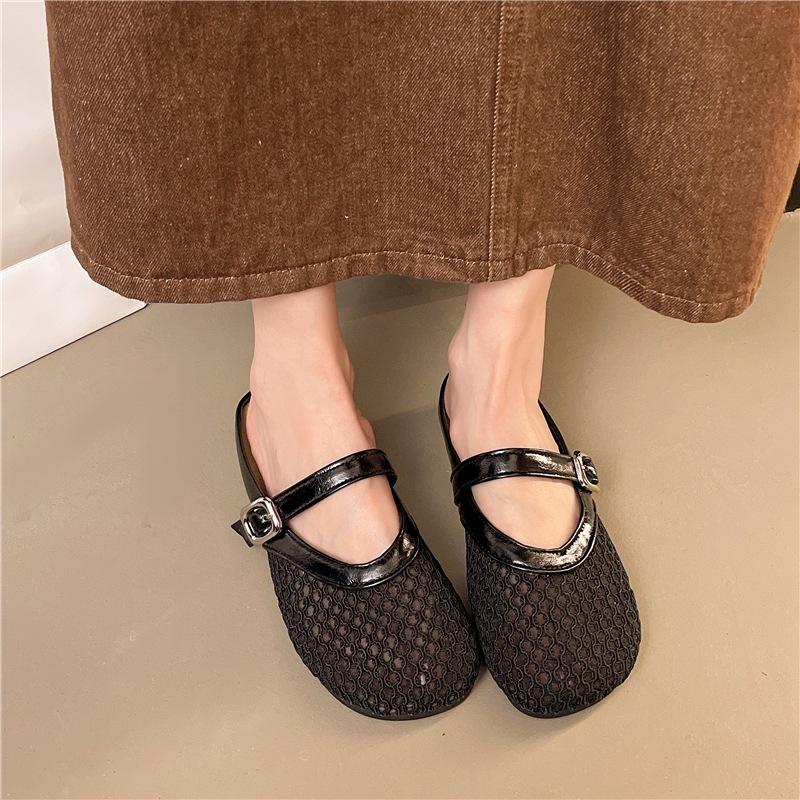 Mesh Bag Head Dragging Hole Shoes Mary Jane Half Slippers Women's Outer Wear Hollow Woven Fishing Net Shoes Non-slip Flat Sandals
