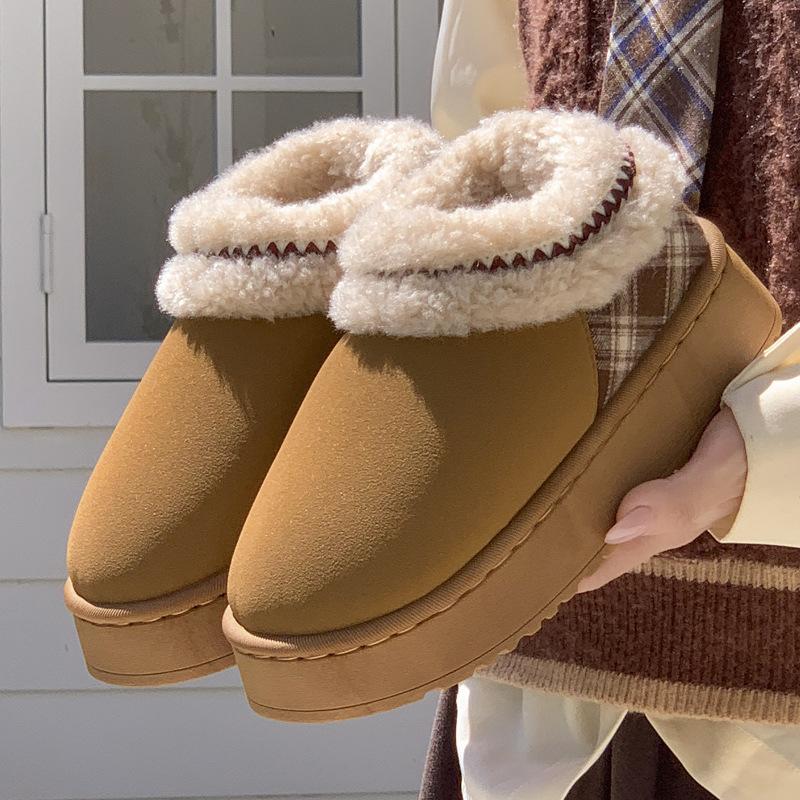 New Thick-soled Heightening Medium-top Wool Cotton Shoes Autumn and Winter Home Velvet Warm and Non-slip Commuting Snow Cotton Shoes