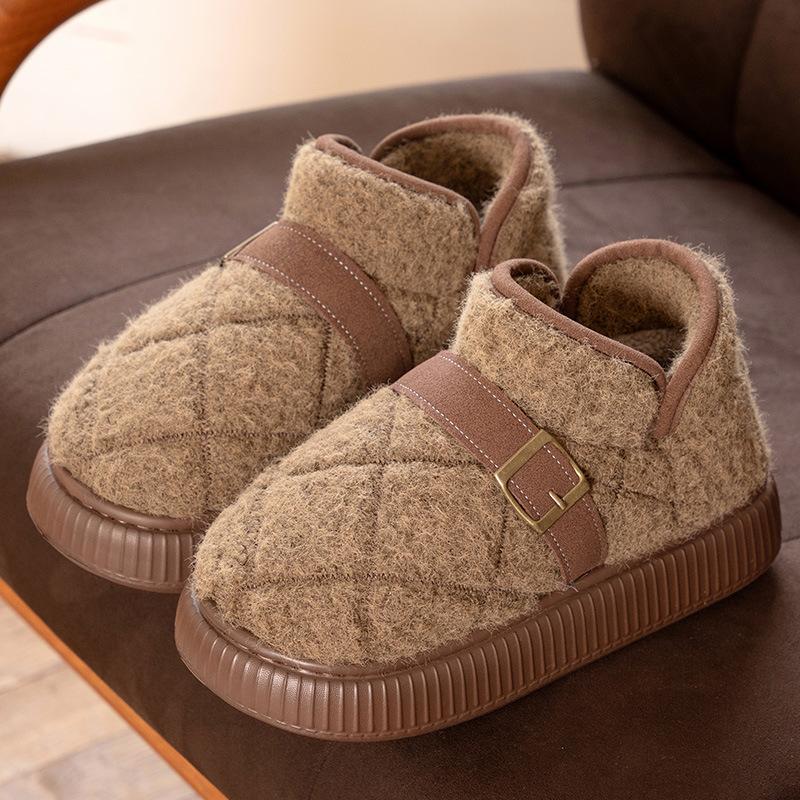New Thick-soled Heightening Light Luxury Plaid All-inclusive Heel Cotton Shoes Autumn and Winter Velvet Warm Versatile Commuter Cotton Shoes